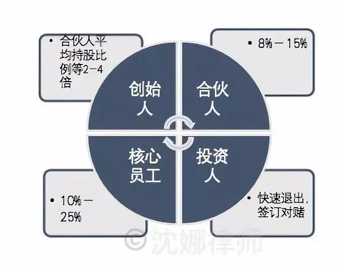 (3)多元股权结构:根据4C理论将股东分为创始人、合伙人、核心员工、投资人,分别授予股权。