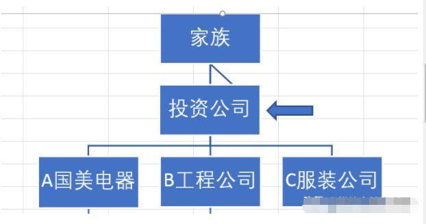 假如这个家族是老大和他老婆,还有小姨子、小舅子,一帮亲戚成立的,老大占投资公司的51%,然后投资公司占有A公司的60%,剩下的40%就分出去了。