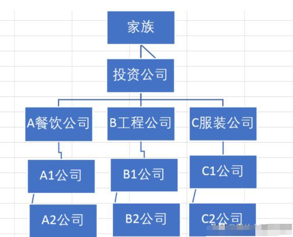 刚刚创业的时候,家族成员先成立一家投资公司,这家投资公司又成为A公司的股东,如果A公司再扩分公司,那下面就是A1公司和A2公司,要是这家餐饮公司干得不错,我们现在要投资另外一家B公司。