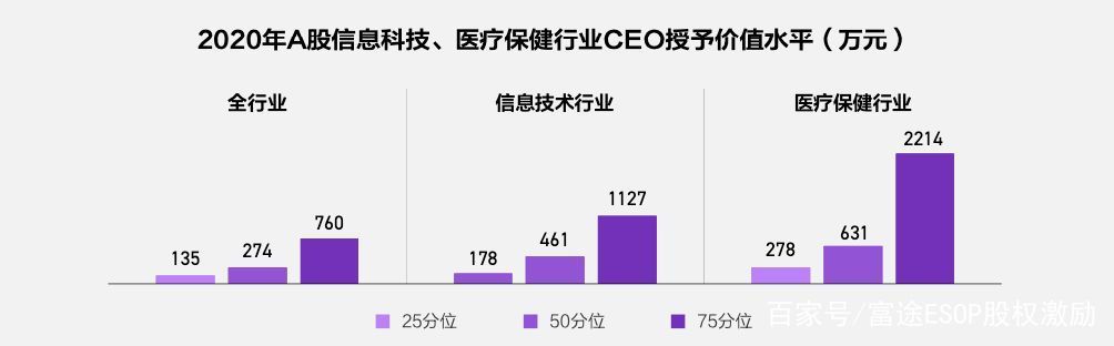 在现金薪酬水平涨幅较高的基础上,A股热门行业信息科技、医疗保健行业2020年CEO授予价值的中位水平分别为461万元和631万元,高于全行业的274万元。