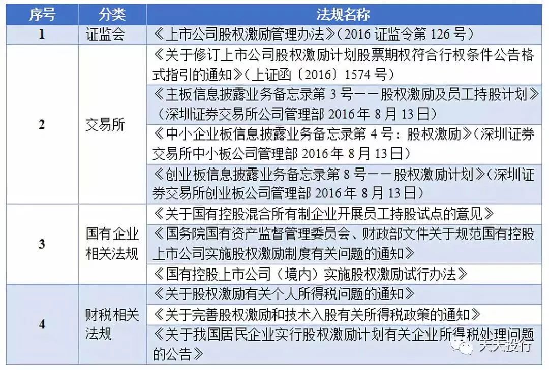 据汇总,与股权激励相关的核心法规主要如下: